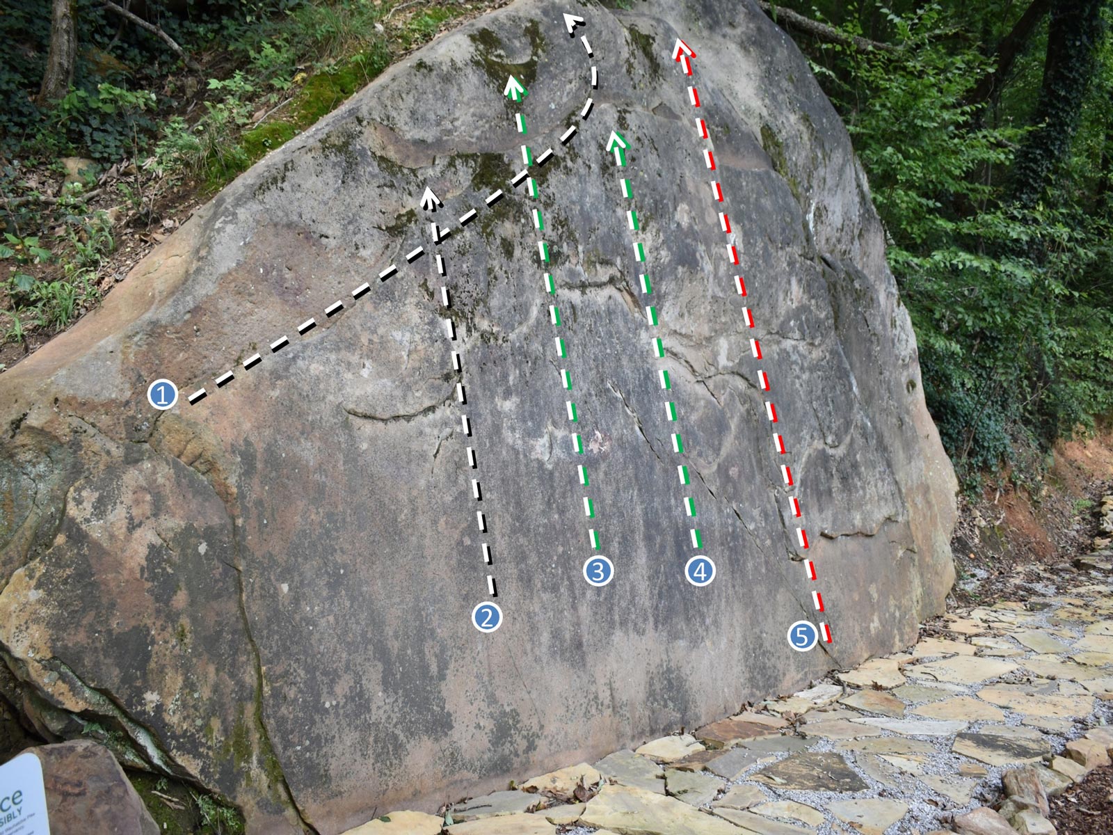 Gilly Gully –— V0: Climb the fun corner feature that trends slightly left.